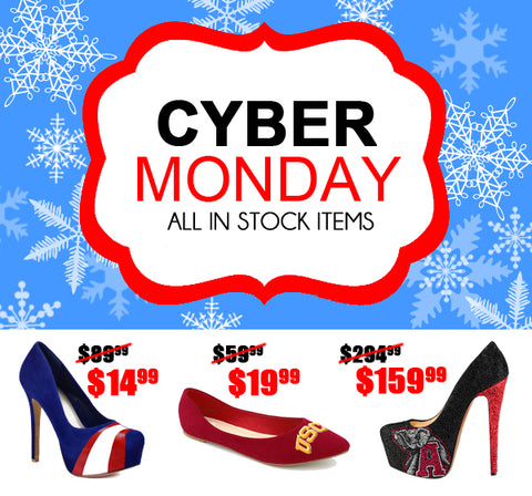You DO NOT want to miss out on our huge Cyber Monday sale! All of our awesome shoes make the perfect gifts for this holiday season. Now when you spend $60 you will get our fabulous team color scarves for only $5.