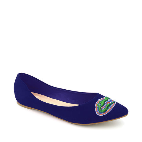 Florida Gators Pointed Toe Blue Suede Ballet Flats