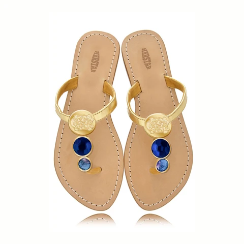 North Carolina Tar Heels (UNC) Ladies Jewel Embellished Flat Sandals-With Large Royal Blue Jewel and Small Powder Blue Jewel