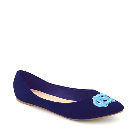 North Carolina Tarheels Pointed Toe Blue Suede Ballet Flats